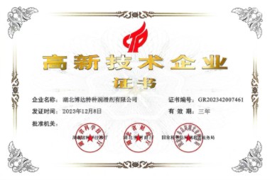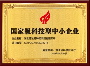 近日武汉博达特种润滑技术有限公司荣获湖北省专精特新“小巨人”称号,这是国家和政府对武汉博达自主创新能力和技术研发实力的认可,也是对产品质量、服务水平、市场竞争优...